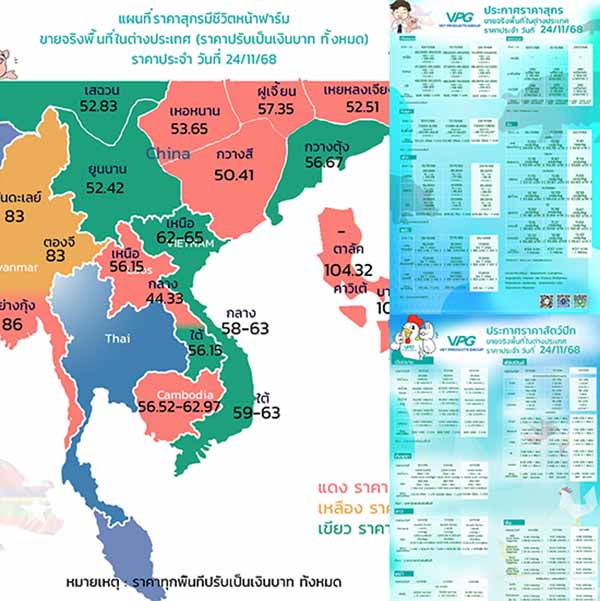 เช็กด่วน! #ราคาหมู และ #ราคาสัตว์ปีก มีชีวิตหน้าฟาร์มล่าสุด ประจำวันที่ 24 พฤศจิกายน 2568 ในประเทศจีนและกลุ่มประเทศอาเซียน