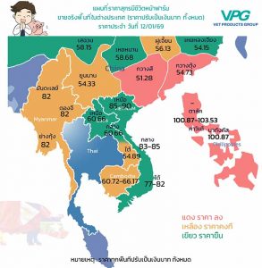 🔜กลาง42,000กีบ/kg(60.66บาท/kg) 🔜ใต้ 38,000 กีบ/kg(54.89บาท/kg)