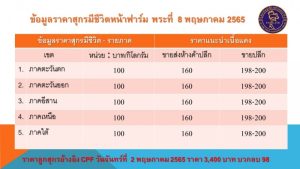 ลูกสุกรขุนเล็ก 16 กิโลกรัม วันจันทร์ที่ 2 พฤษภาคม 2565 : 3,400 บาท บวกลบ 98 บาท